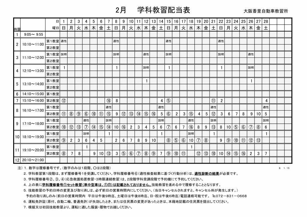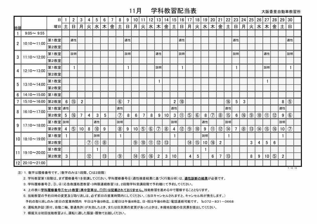 学科教習配当表